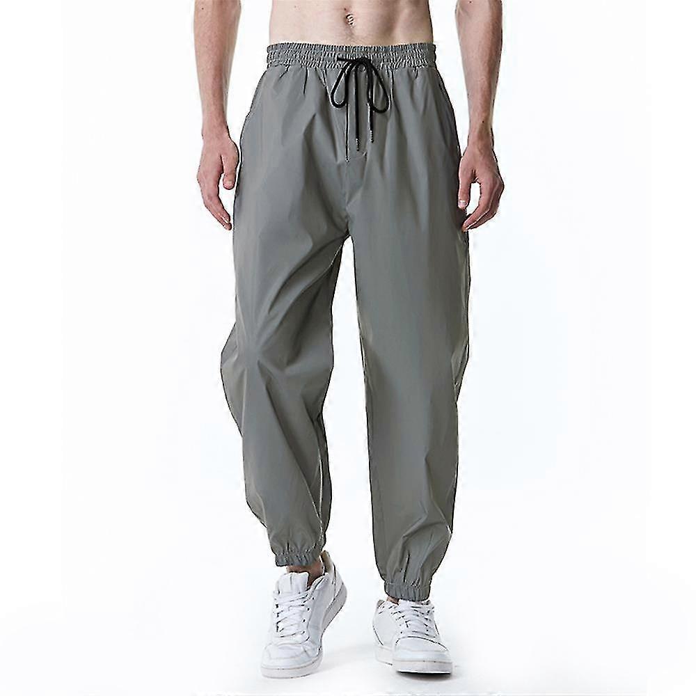 Men's Solid Reflective Drawstring Pants Hip Hop Dance Pants Trousers With Pockets