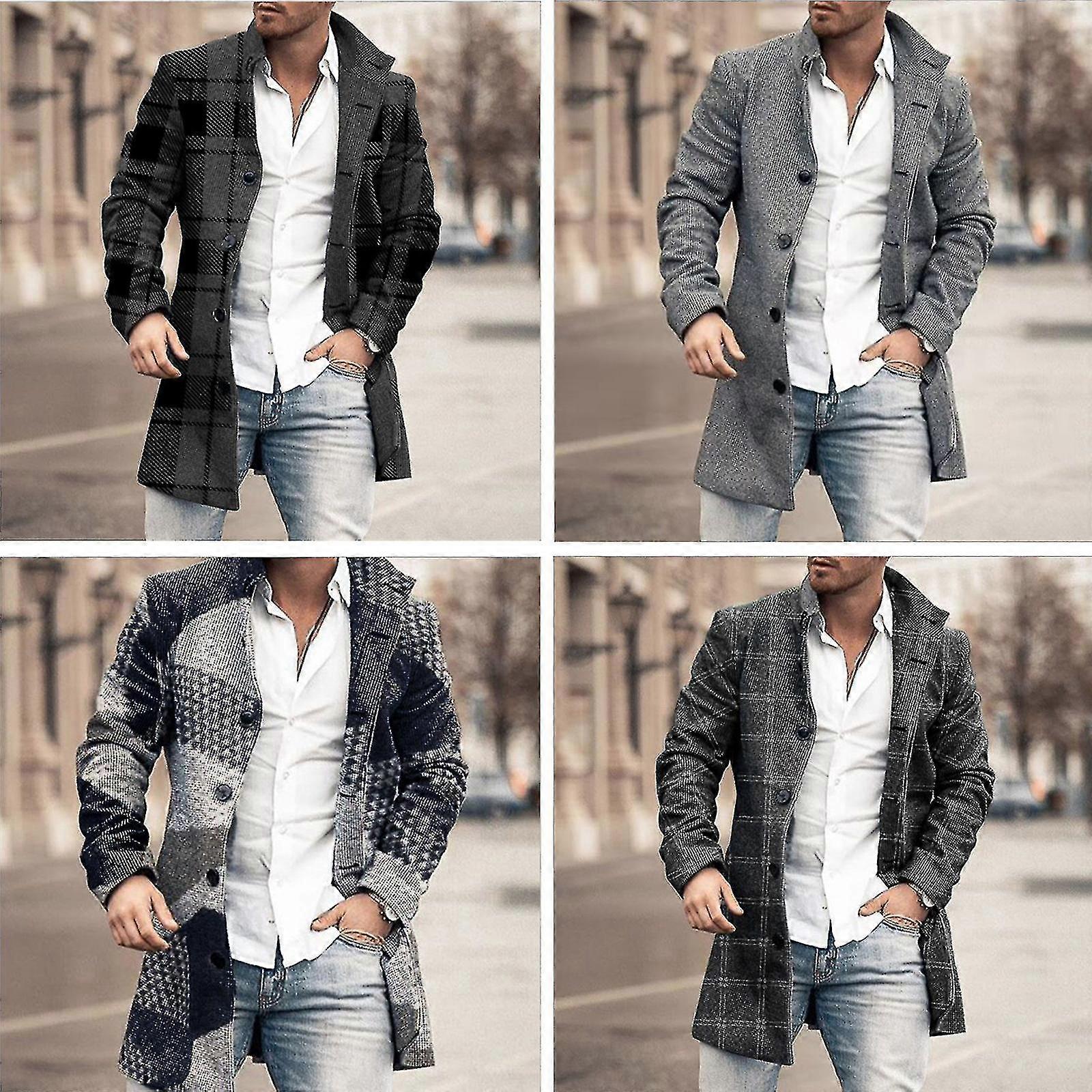 Men's Wool Coat Jacket Single Breasted Mid-length Lapel Woolen Cloth For Indoor & Outdoor Wear