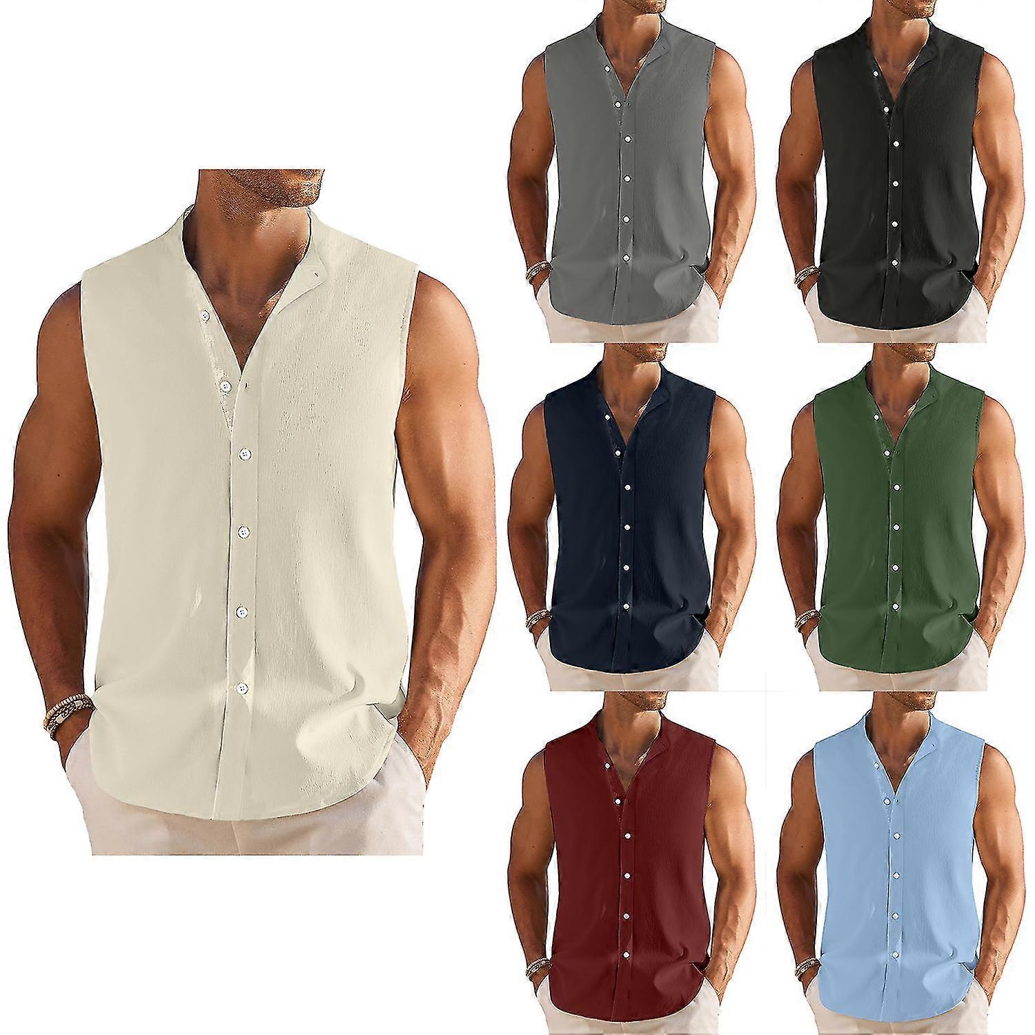 Men's Summer Beach Tank Tops Sleeveless Button Up Shirt Casual Textured Tank Shirts -gsl