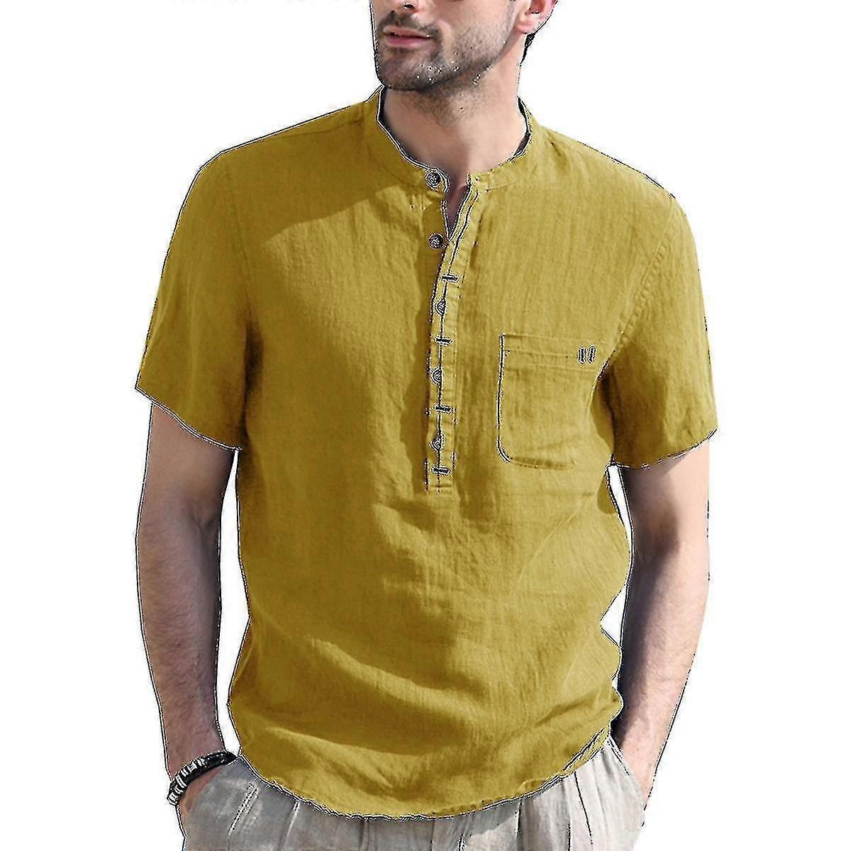 Men"s Linen Sweatshirt Quick Dry Breathable Slim Short Sleeve Shirt