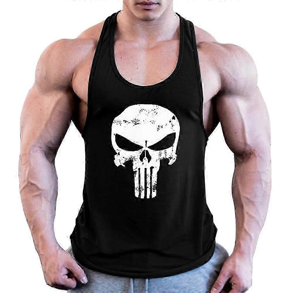 Men's Fitness Combed Cotton European Size Retro Skull Print Wide Shoulder Vest