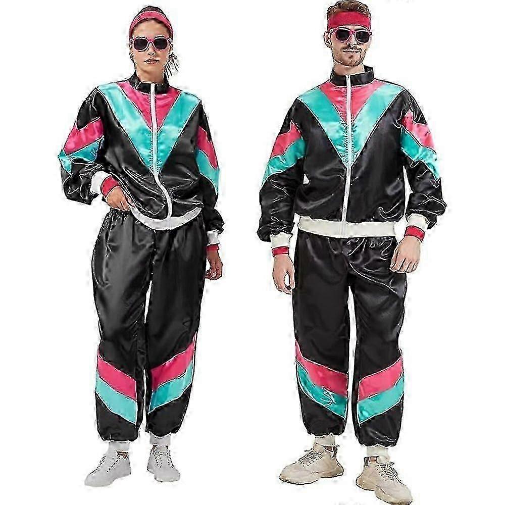 Men Women 80s 90s Tracksuit Retro Hip Hop Outfit Windbreaker Set for Couples Costume