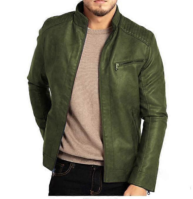 Men's Stand Collar Leather Jacket Motorcycle Faux Leather Outwear