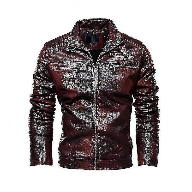 Men's Motorcycle Leather Jacket Stand Collar Zipper Fleece