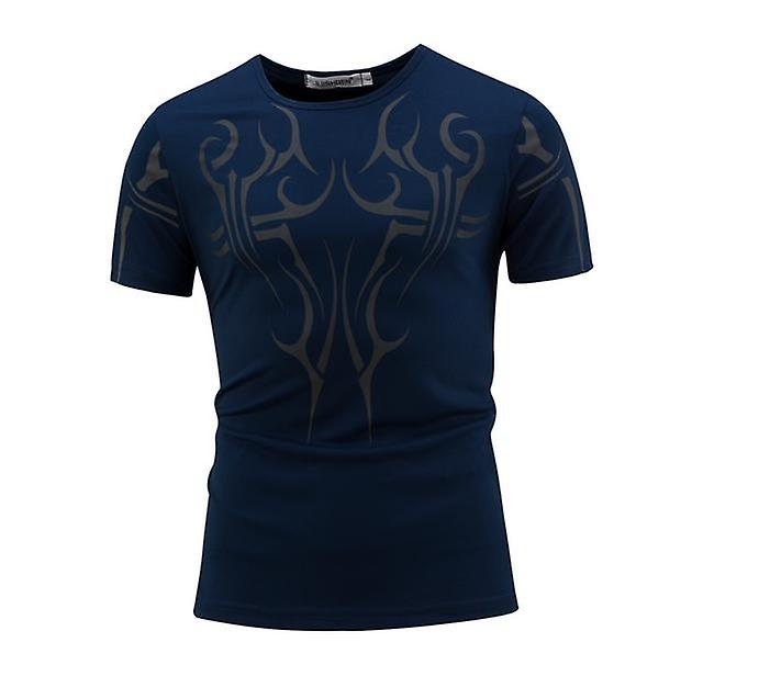Men's Slim Print Short Sleeve Ins Round Neck T-shirt Youth Fashion Casual Sports Top Tee