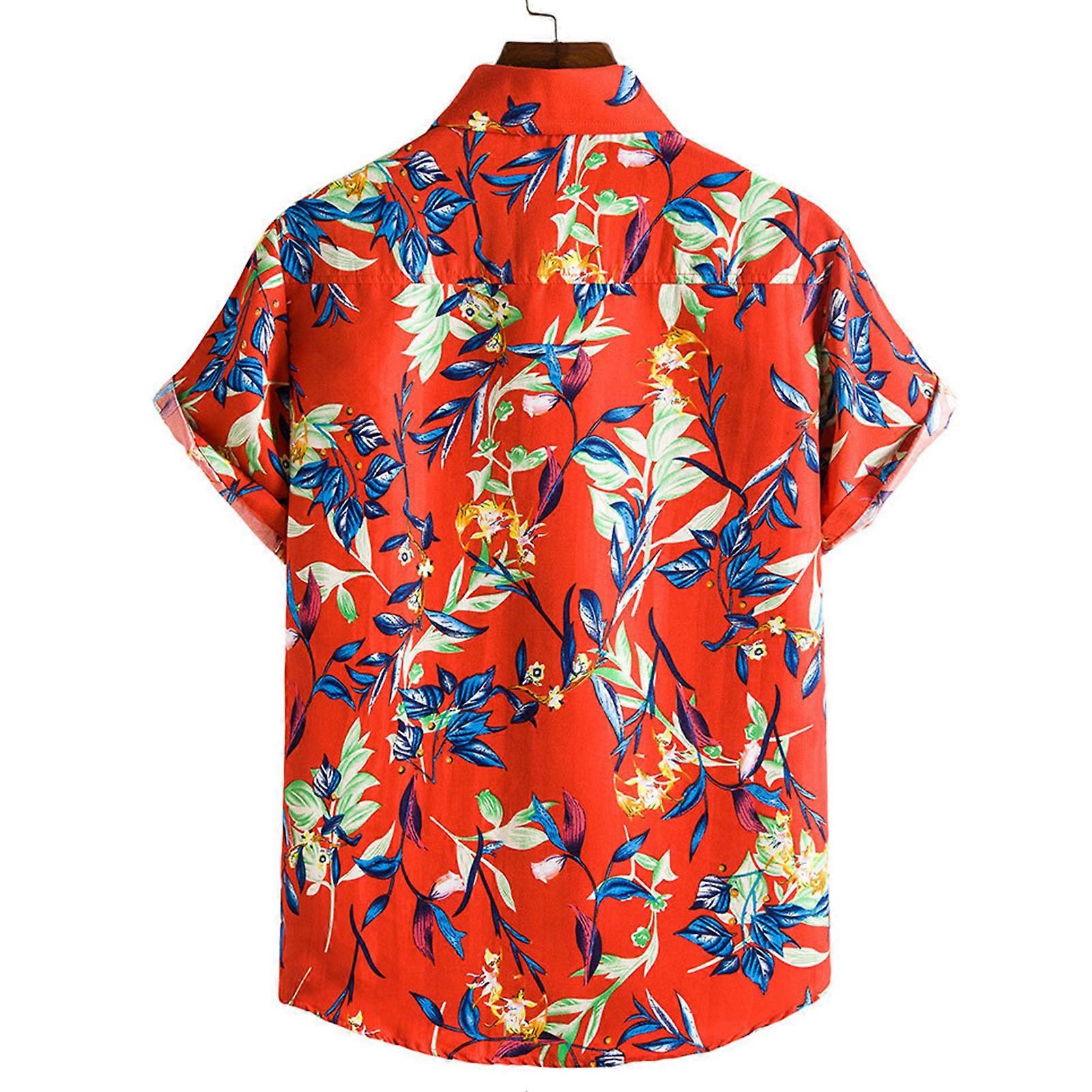 Men's Short Sleeve Hawaiian Shirt Front Button Casual Vacation Style Tee Tops