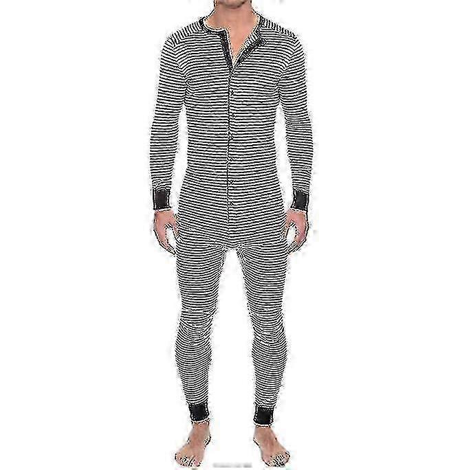 Men's Long Sleeve Comfortable One Piece Stripped Pajama Jumpsuit-jie