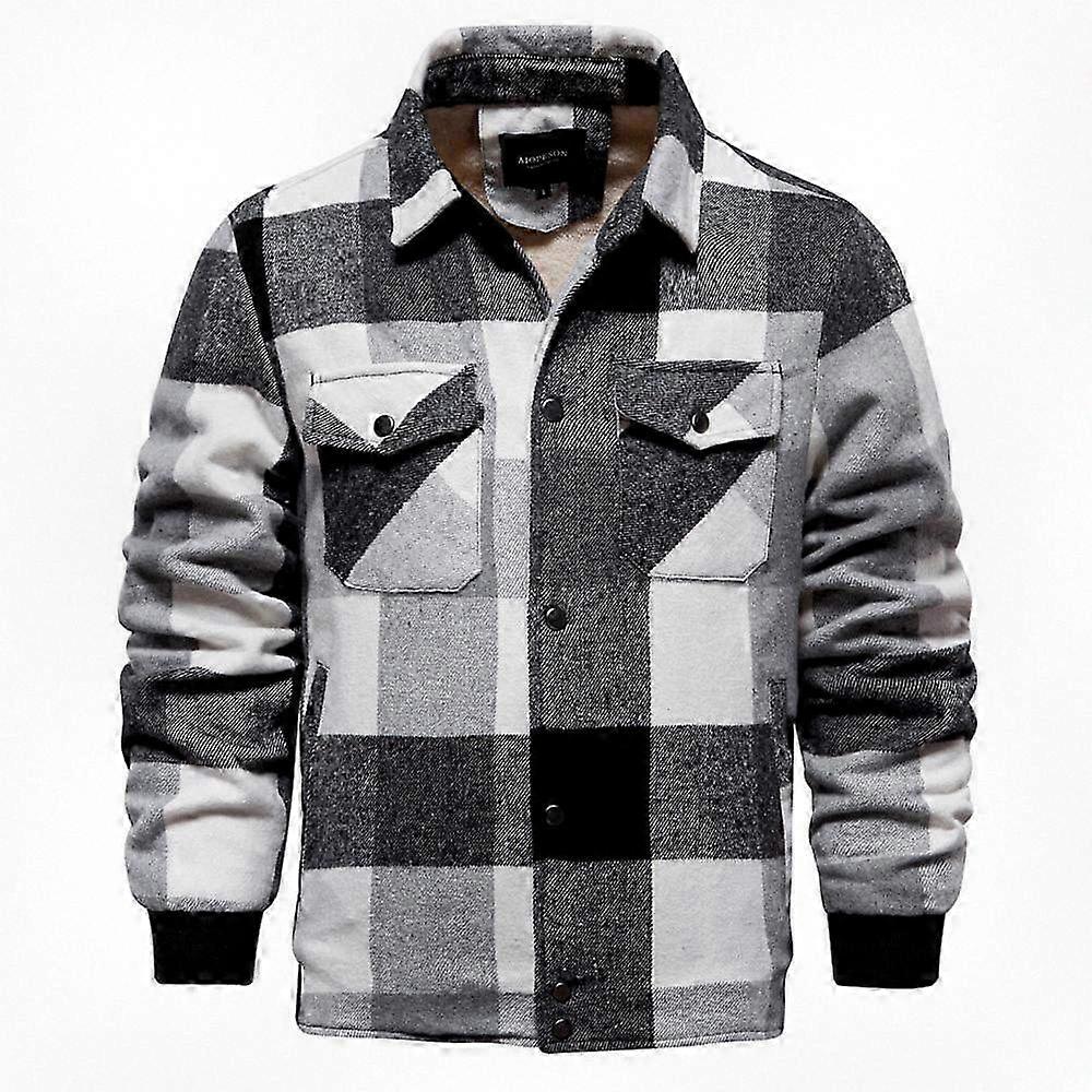 Men's Plaid Flannel Sherpa Lined Winter Coat Long Sleeve Fleece Jacket Euro Sizing