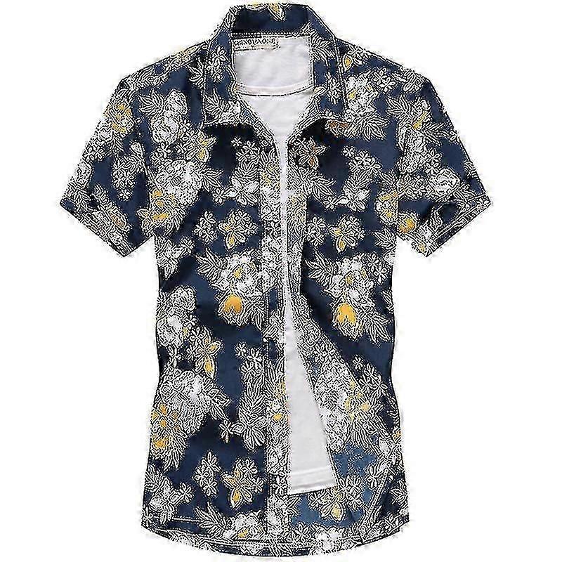Men Hawaiian Floral Short Sleeve Shirts Casual Tee Summer Beach Party Holiday Shirt Top
