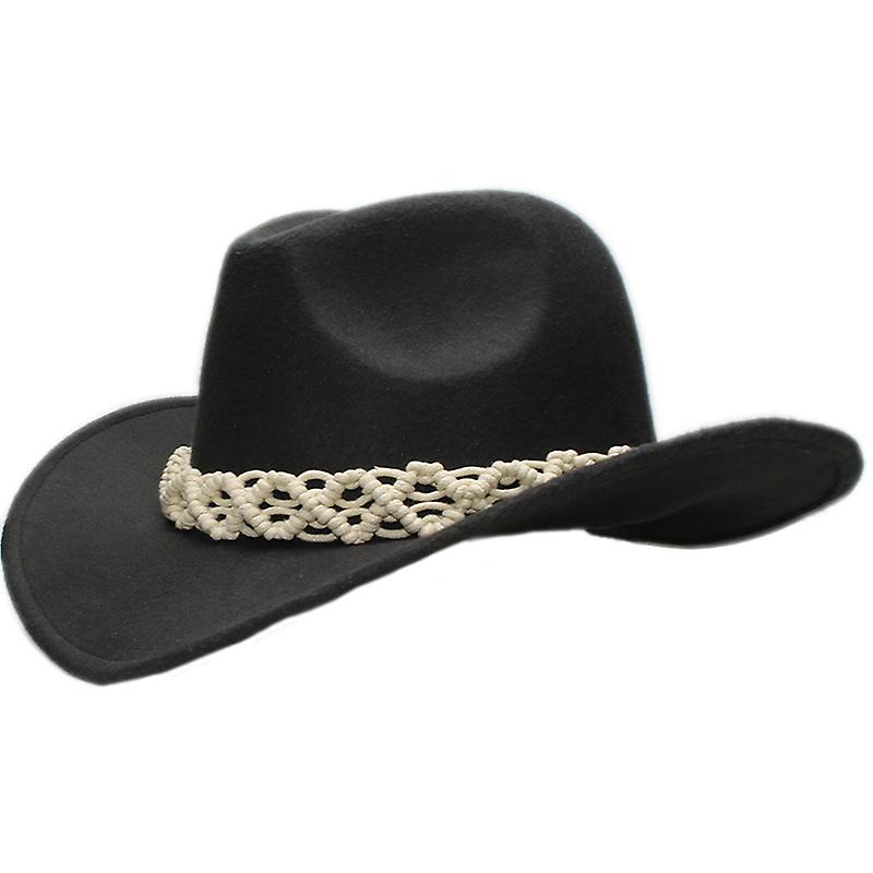 Retro White Hollow-out Knit Band Parent-child Unisex Adult / Kid Wool Wide Brim Cowboy Western Hat Cowgirl Cap (61cm/57cm/54cm