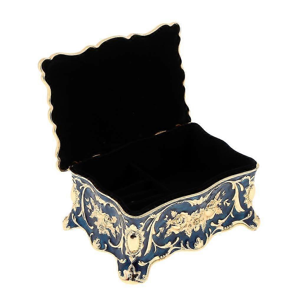 Retro Enamel Flower Sculpture Trinkets Chest Jewelry Box Organizer Dark Blue