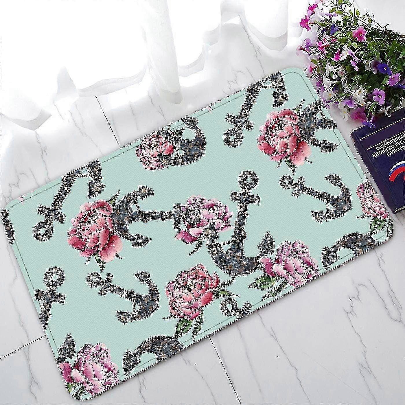 Retro Nautical Sea Ocean Navy Anchor Flowers Doormat Indoor/outdoor/bathroom Rugs 45x75 Cm