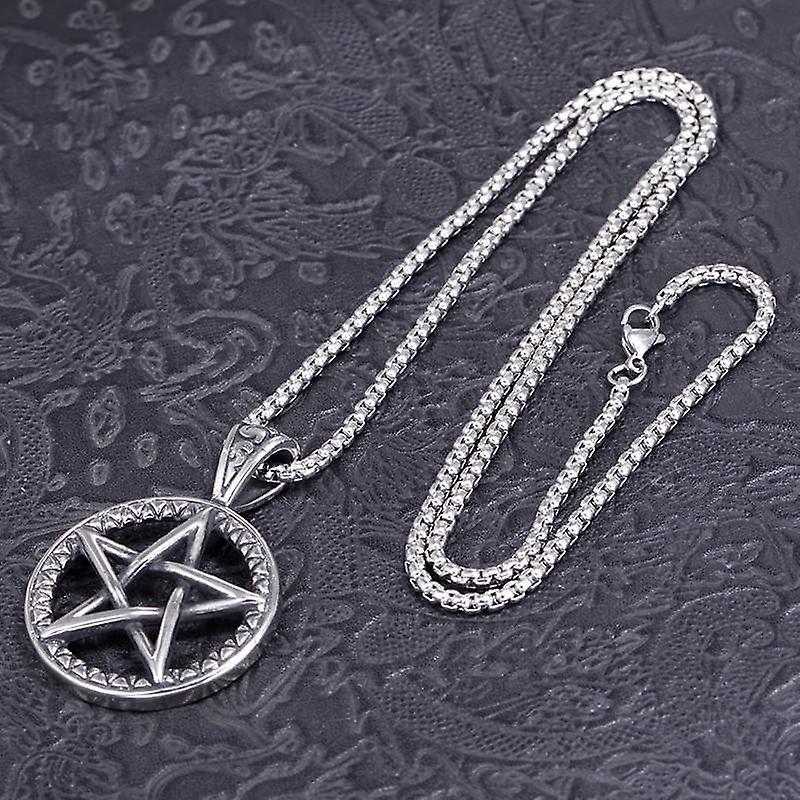 Retro Round Five-pointed Star Pendant Necklace Men's Necklace Vintage Metal Sliding Round Pendant Accessory Party Jewelry