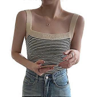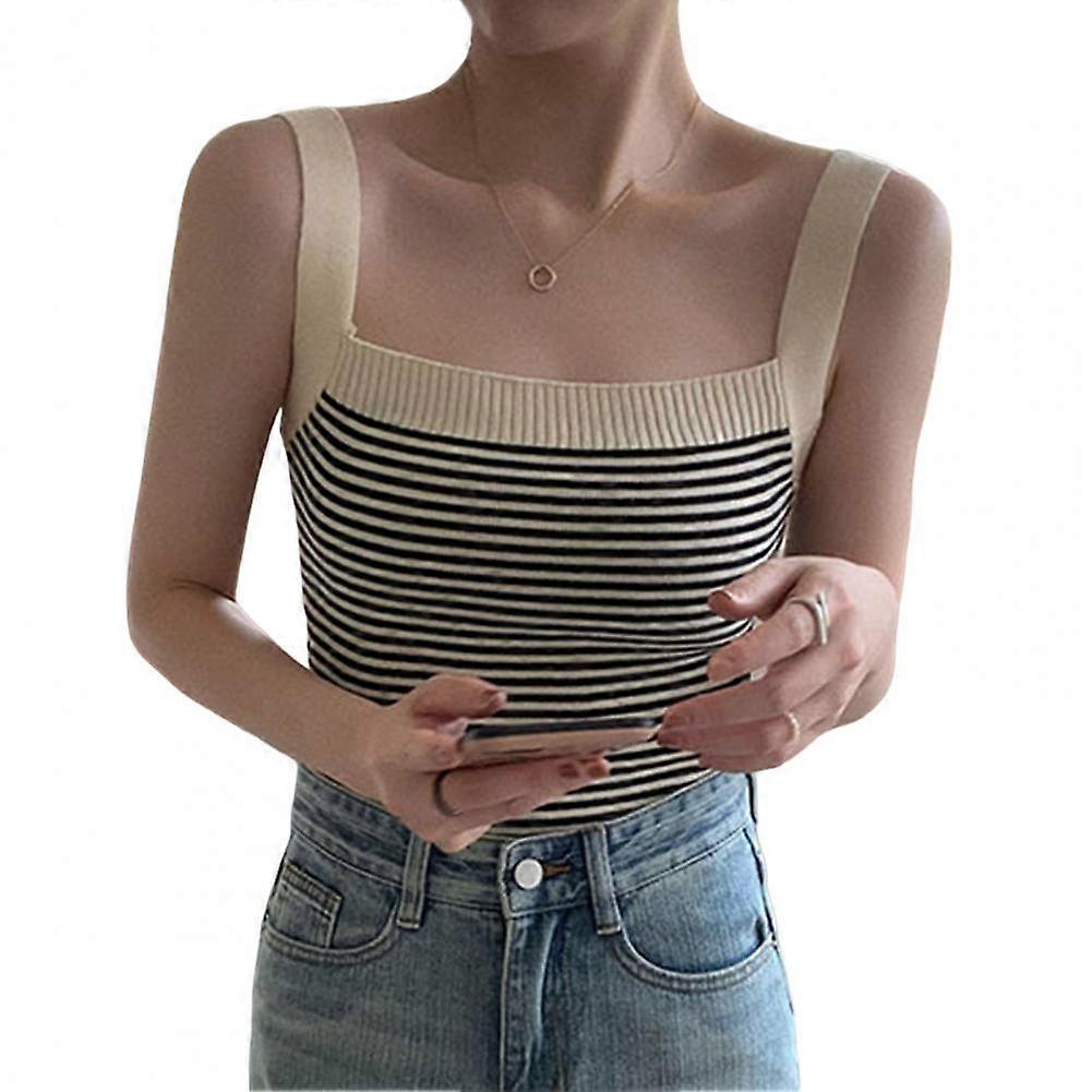 Retro Striped Print Knitting Vest Women Top Square Collar Sleeveless Wide Shoulder Straps Top Sling Camisole Clubwear Tank Top