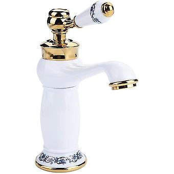 Retro Single Handle Basin Faucet Brass Ceramic Sink Faucet Blue And White Porcelain Long Neck Vintage Flowers With Inlet Cold/hot Water Tap Kitchen Ba