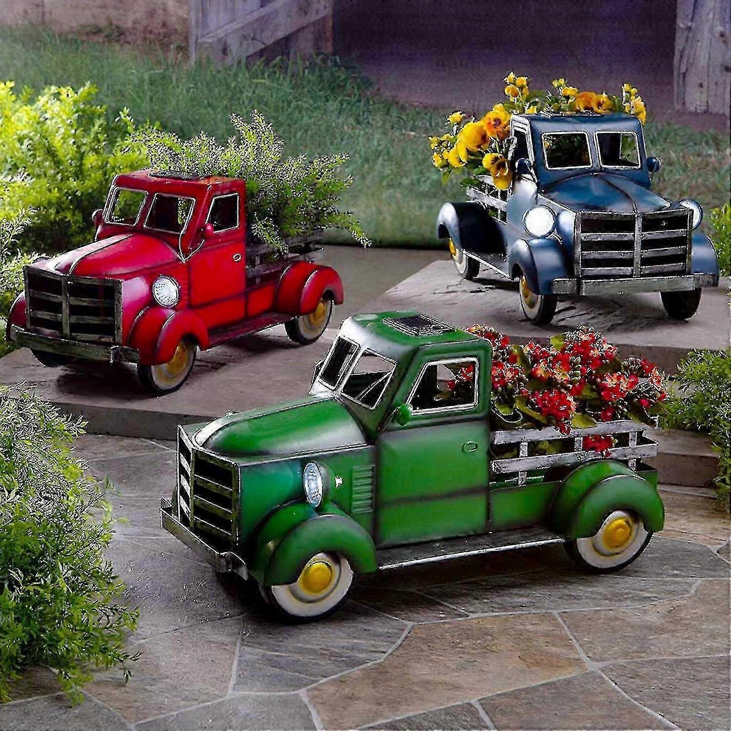 Retro Style Solar Pickup Truck Creative Truck Flower Pot Handmade Resin Crafts Ornament With Led Lig