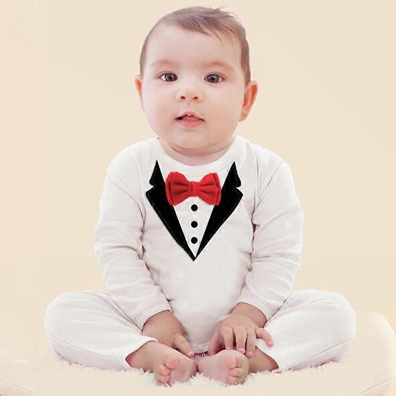 Infant Kids Baby Boys Formal Long Sleeve Bow Romper Wedding Party Birthday Gentleman Jumpsuit Photograph