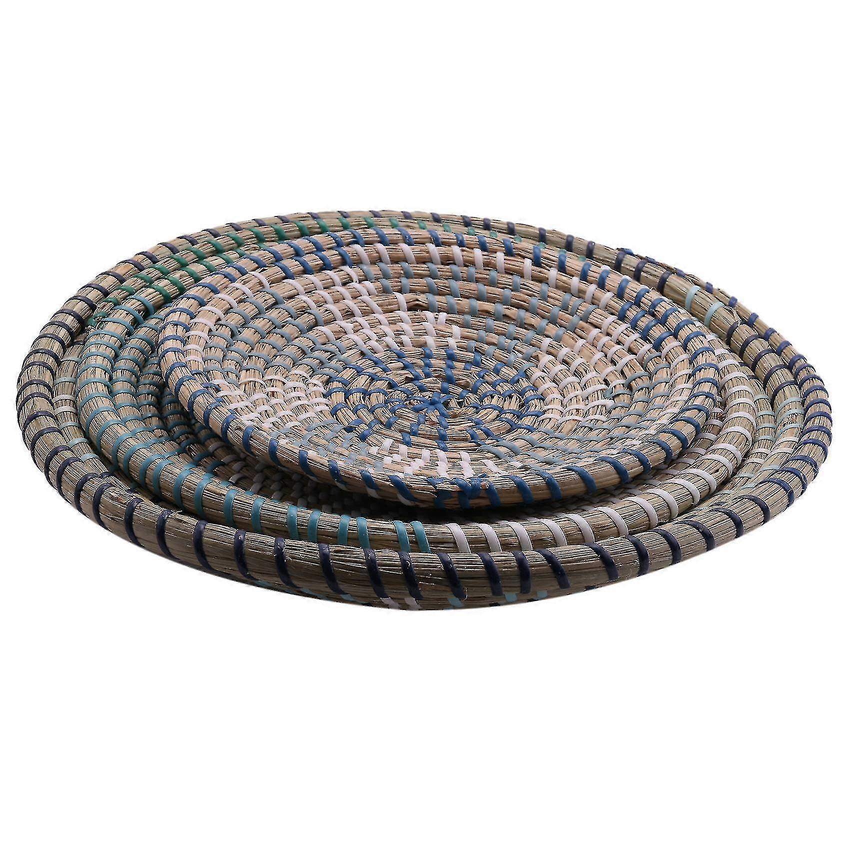 WALL BASKET DECOR - Each woven wall basket features a READY TO HANG LOOP compatible with instant wall art installation, whilst adding a splash of colour to your walls in any room in the house.MULTIFUNCTIONAL - Thanks to the striking patterns, each woven wicker wall basket can be used as a standalone statement piece, as a FRUIT BOWL or coffee table ornament, or styled as a set of three WALL HANGING BASKETS.DIMENSIONS - Sold as a SET OF THREE. SIZE 1 = 12 inch diameter. SIZE 2 = 10 inch diameter SIZE 3 = 8 inch. Due to the handcraft nature of these rattan baskets, please expect slight variation in colors and size as each piece is uniqueHAND CRAFTED WALL ART - These wicker wall decor baskets are HAND-WOVEN BY VIETNAMESE ARTISANS from natural seagrass, using traditional woven basket techniques, adding an authentic and ethnic Press to your home.WOVEN WALL BASKETS - Bedeck your home in ethical luxe and adorn your walls with these beautiful yet practical rattan baskets, woven in blues and greens. THE LATEST TREND IN SUSTAINABLE INTERIOR STYLE.GIFTS compatible with HER OR HIM - These beautiful woven baskets make a perfect birthday, Mother's Day present or housewarming gift compatible with those who loves African wall decor, rustic styling or boho home decor.Unique Decor - If you are in love with the farmhouse decor styling these woven wall baskets are the perfect alternative to the tobacco basket. They create amazingly beautiful accent or statement pieces in your home, such as Gallery Wall Pieces, Shelf Decor Baskets, Wall Statement Baskets and Centerpiece BasketsColour:As shownMaterial:rattanSize:about 30cm,25cm,20cmPackage Contents:3 x Rattan Wall Decor(3 different styles)Only the above package content, other products are not included.Note: Light shooting and different displays may cause the color of the item in the picture a little different from the real thing. The measurement allowed error is +/- 1-3cm.