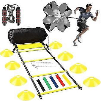 Sport Agility Ladder Speed Training Equipment Set,8 Cones And Resistance Parachute 16 Rungjump Rope,5 Resistance Bands-for Footballsoccer, Running Bas