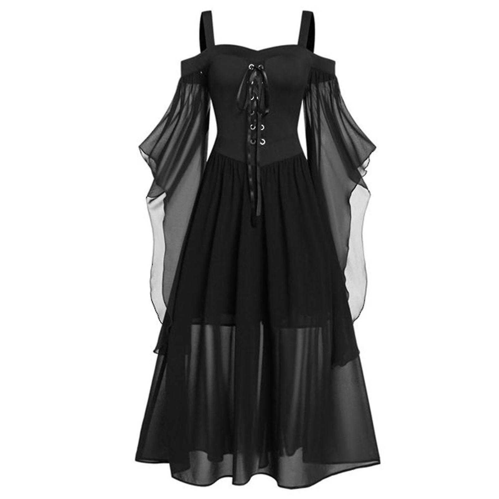 Witch's Sexy Suspender Front Tie Dress Solid Color Gothic Long Dress For Halloween Party