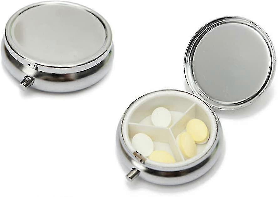 Traveling 2 Pcs Round Metal 3 Compartment One Day Pill Storage Case Box Medicine Vitamins Holder Organizer Health Care Pocket Pill Dispenser Container