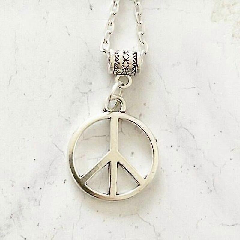 Peace Sign Pendant Necklace Vintage Bronze Harmony Symbol Chain Cord Choker Hippie For Women Jewelry Birthday Friendship Gift