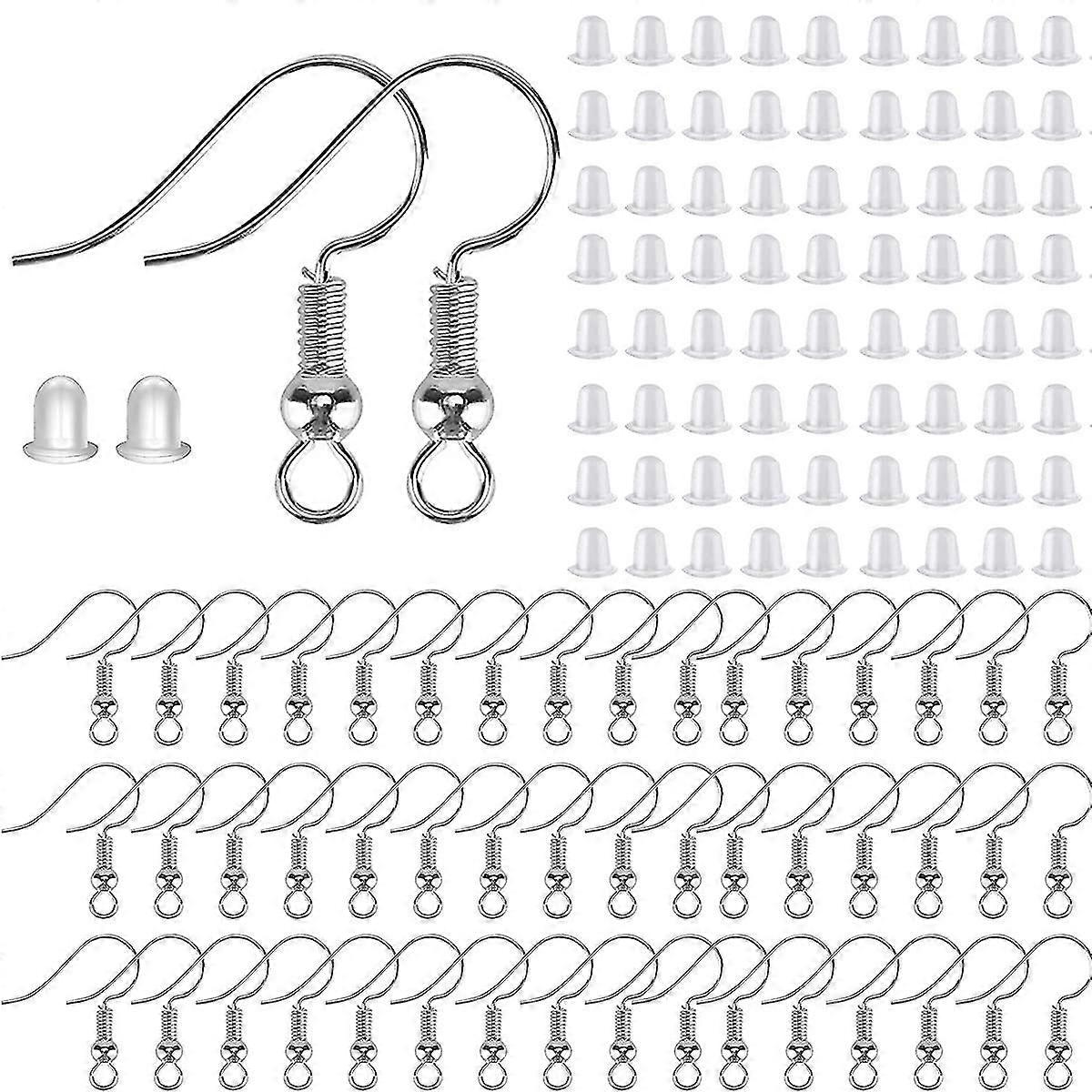 Earring Hooks With Plastic Box,100 Pcs/50 Pairs Hypoallergenic Jewelry Findings Parts With 100 Pcs Clear Silicone Earring Backs Stoppers For Diy Jewel