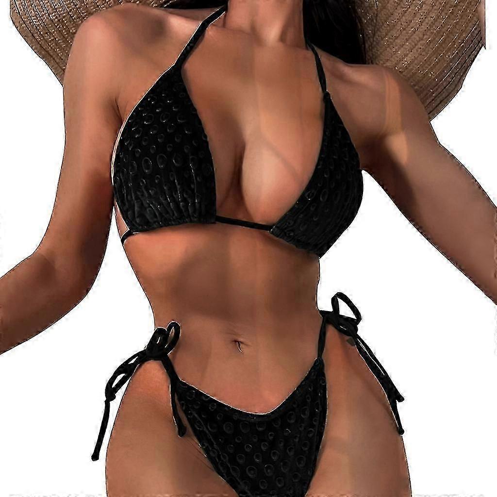 Ladies Lace Up Swimwear Female Halter Triangle Bikinis Set 2 Pieces Swimsuits