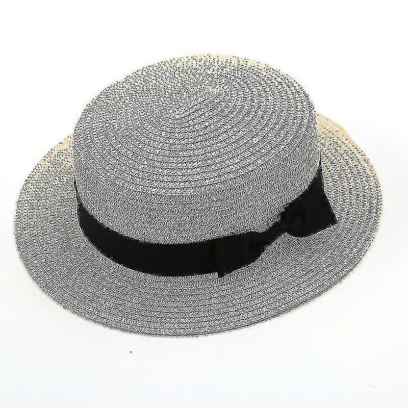 Ladies Straw Boater Hat Bowknot Sun Protection Wide Brim Outdoor Caps