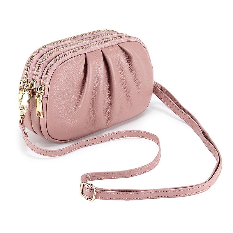 Ladies Women Leather Handbag Packet Crossbody All-match Wrinkled Soft Large Capacity Three-layer Zipper Bag