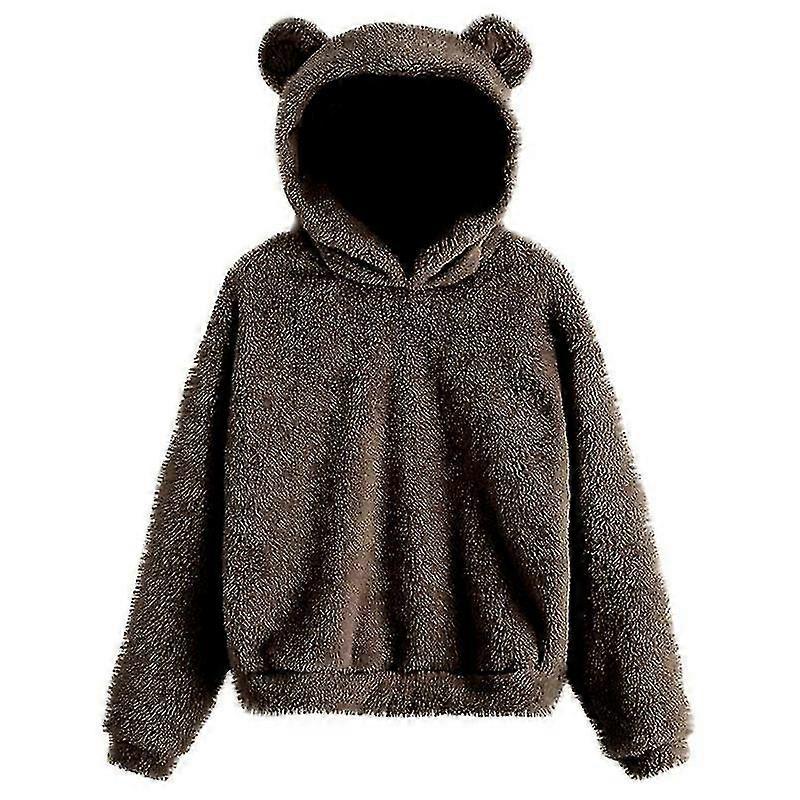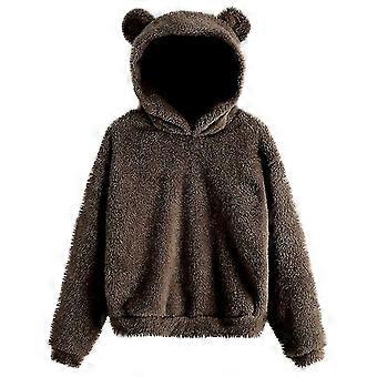 Ladies Rabbit Ear Fluffy Coat Fleece Hooded Solid Color Winter Warm Outwear Coat