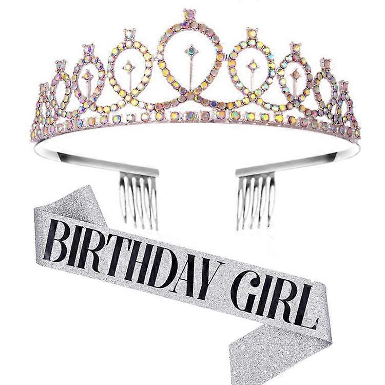 Women Ladies Birthday Queen Tiara And Crystal Sash Crown Headband Shoulder Strap Set