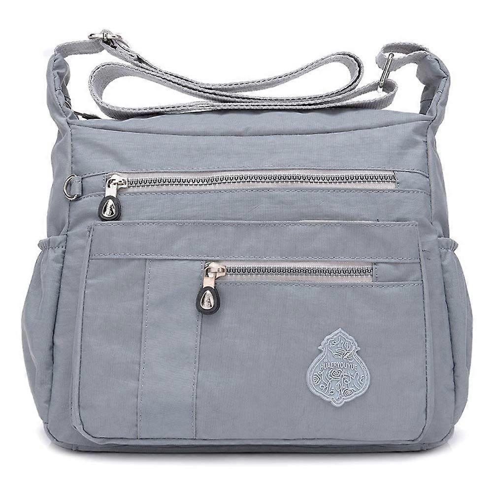 Ladies Waterproof Nylon Crossbody Shoulder Bag Messenger Bag Lightweight Pocketbook Stone Gray