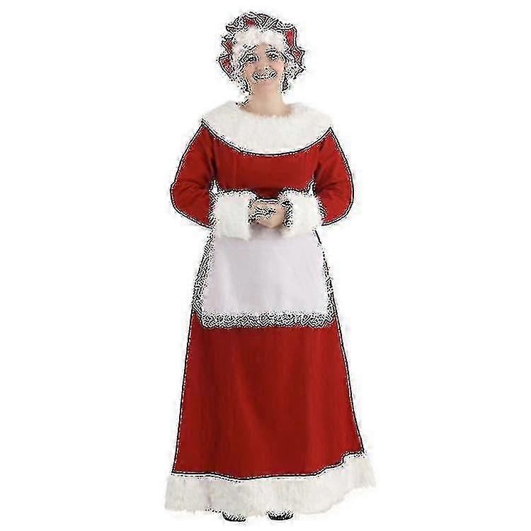 Mrs Claus Pinafore Dress With Apron Santa Christmas Adult Womens Costume - JA