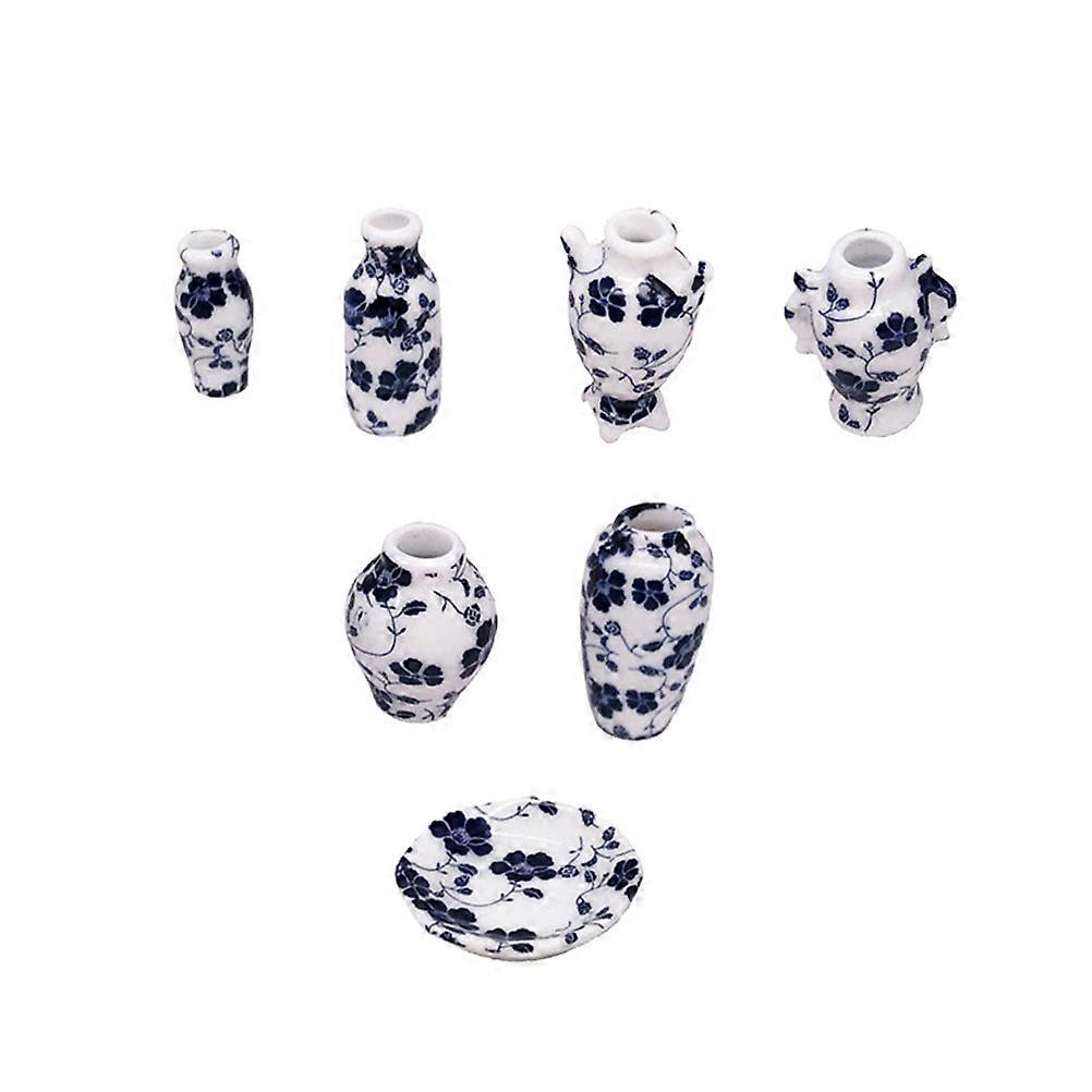 Ceramic Blue and White Flower Pot Scale Model Dollhouse Decoration Lightweight Miniature Accessory for Living Room Table Display
