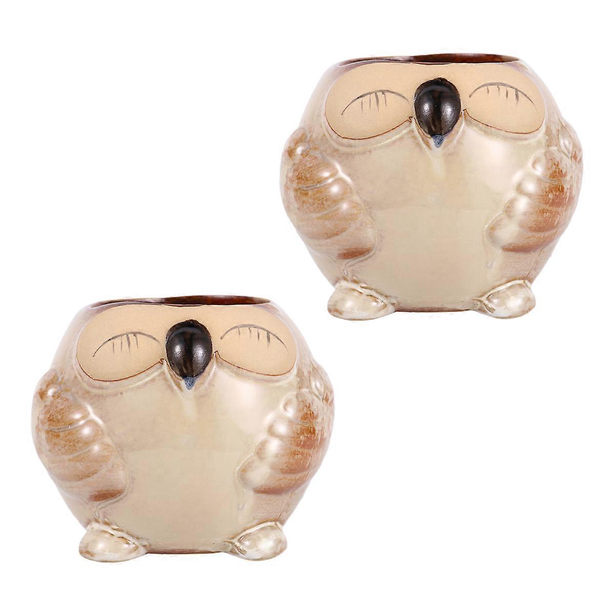 Ceramic Owl Planter Pot Set Lovely Gift Item For Nature Gardening Enthusiasts Breathable Strong Durable Suitable For Seeding Cutting Nursery 2Pcs