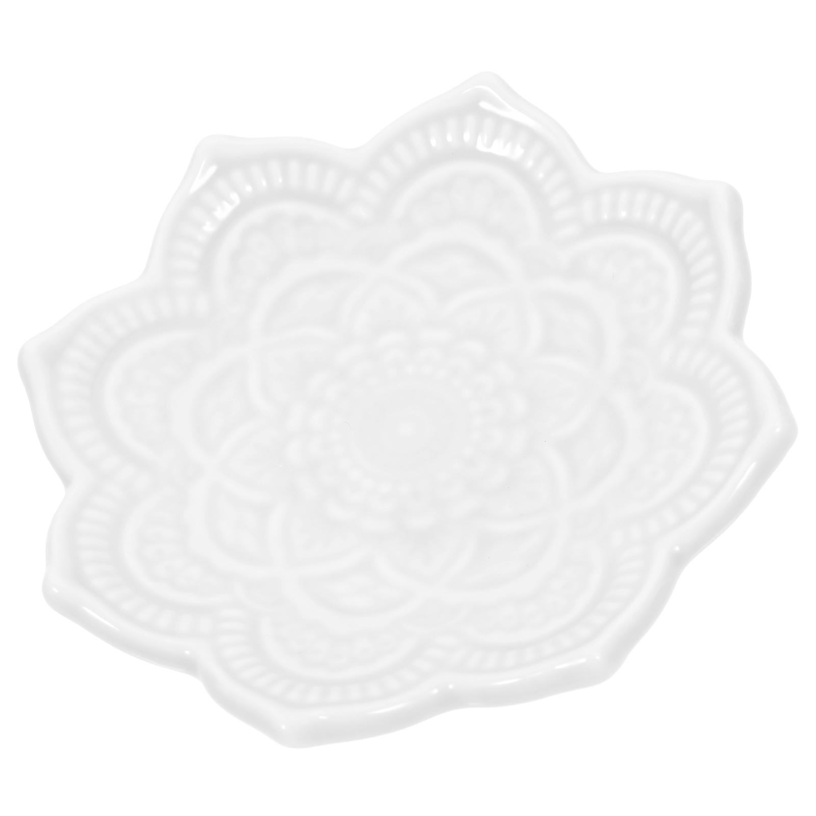 Ceramic Jewelry Tray Ring Dish Mandala Flower Shape Trinket Plate Organizer Dish Office Desk 10x10x2cm 1Set