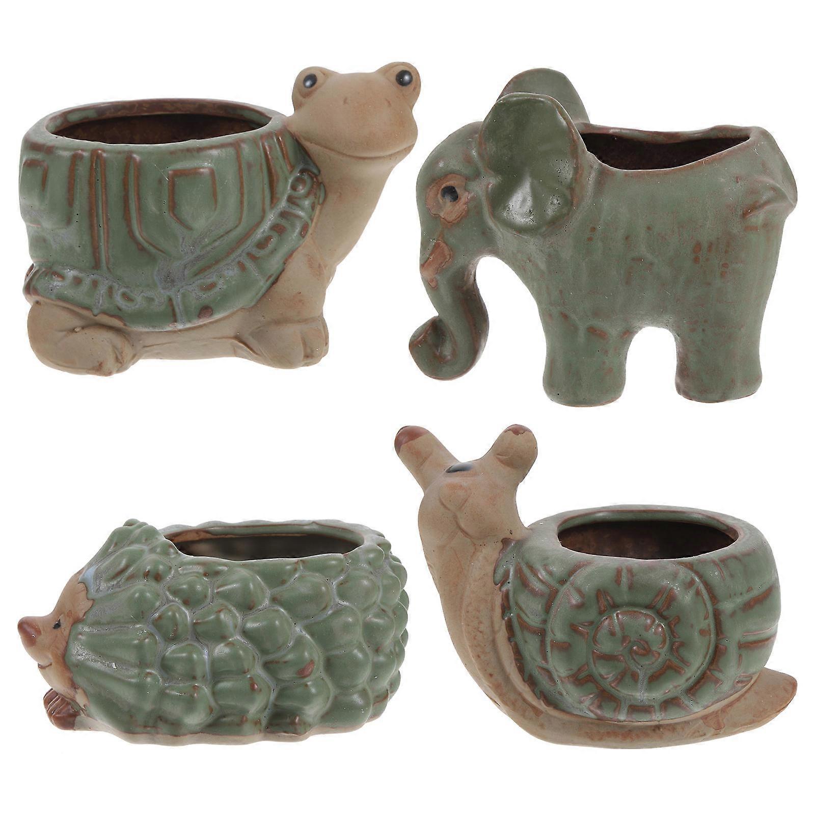 Ceramic Animal Planter Indoor Plant Pots Hedgehog Shape Drainage Hole For Office Desk 4Pcs