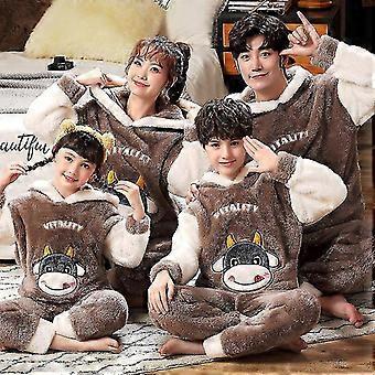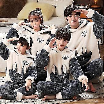 الشتاء الآباء والطفل بيجامة مجموعة الأطفال الفانيلا بيجاما سميكة أفخم هوديي طويلة الأكمام الحيوان الباندا النساء ملابس منزلية