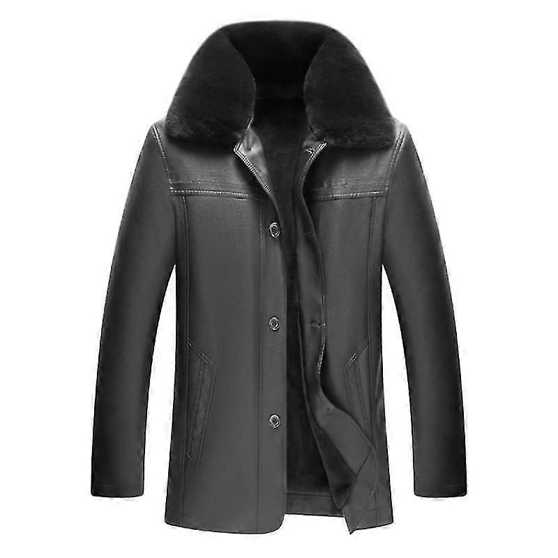 Winter Fur Collar Leather Jacket Men's Button Pu Leather Men Large Siz