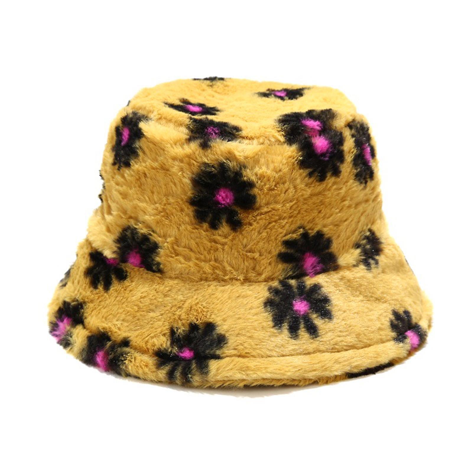 Winter Fashion Plush Warm Marguerite Printed Sunscreen Fishman Bucket Basin Hat