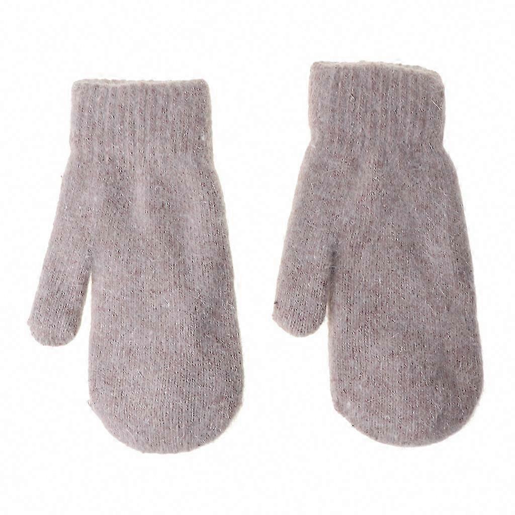 Winter Warm Lined Women's Solid Knitted Fleece Lining Short Full Finger Gloves for Outdoor Cycling Thermal Mittens Accessories Dark Gray