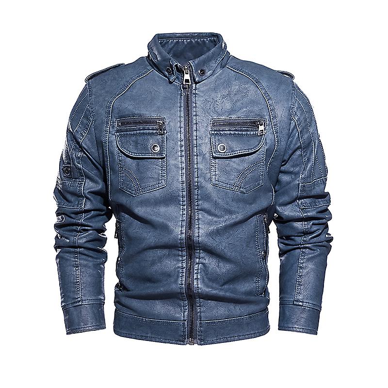 Winter Mens Eather Jackets Motorcycle Stand Collar Zipper Pockets Male