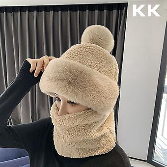 Winter Beanie Scarf Set Hooded For Women Fur Cashmere Neck Warm Outdoor
