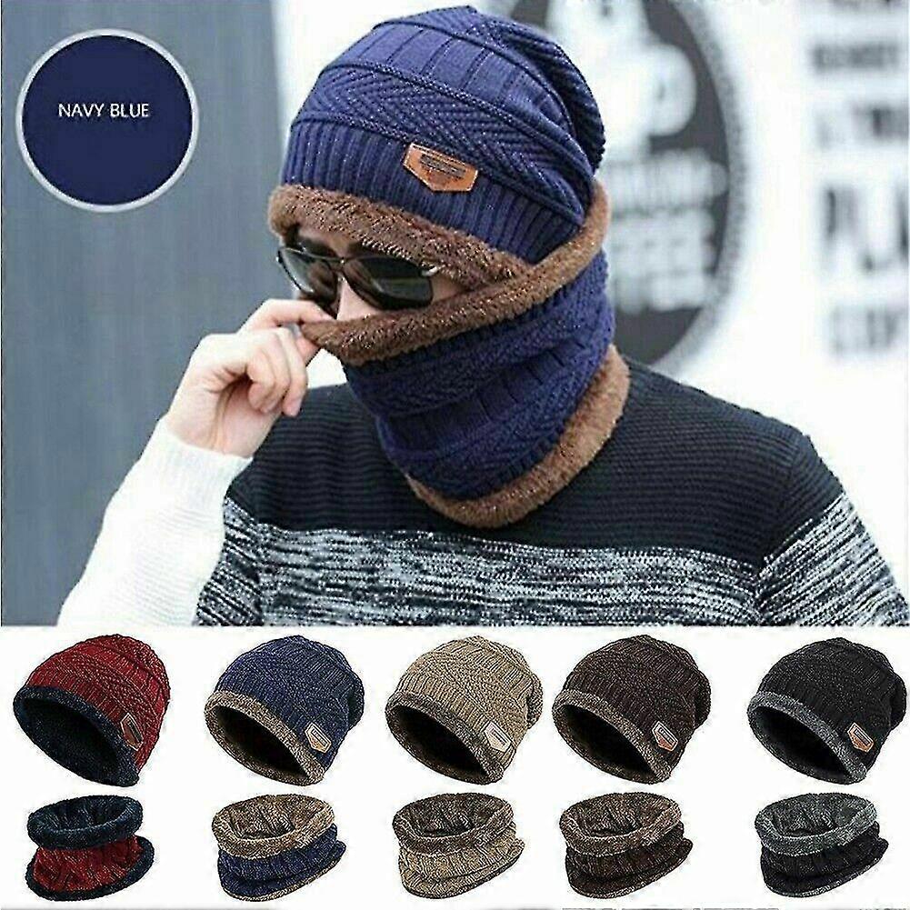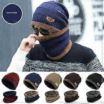 Winter Knitted Hat Men Fur Women Neck Warm Chunky Beanie Fleece Ski Cap