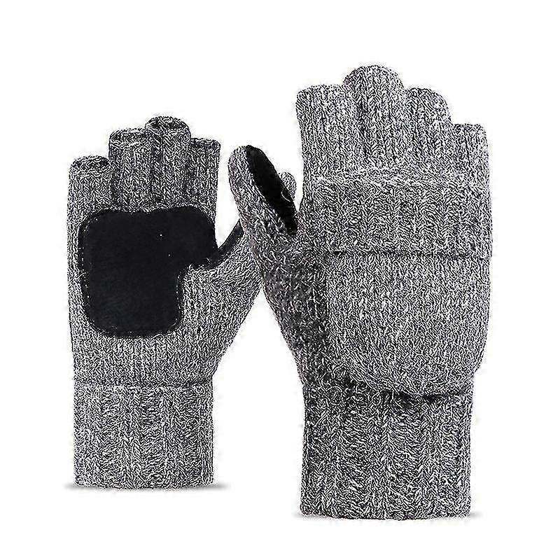 Winter Knitted Fingerless Gloves Convertible Mittens Flap Cover For Men Women
