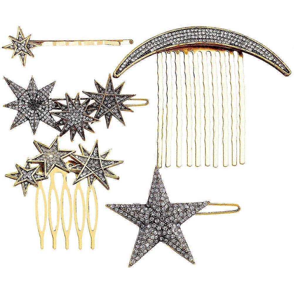 Chinese style hair accessories, present a elegant look. Beautiful hair comb, hair stick and earrings to make your dress more chic, give you unforgotten memories. Elegant shape design, it will be a nice choice for your wedding dress, add a touch of nature and beauty to your appearance. Features -Color:Assorted Color -Material:Alloy -Size:6.50X5.50X0.50cm/2.55X2.16X0.20in - Elegant and vintage, generous and delicate, help you make more beautiful and stunning hairstyle. - Fashionable and distinctive hair accessories, you will be more unique and gorgeous in the crowds. - Perfect workmanship and classic design, the headdresses will be excellent choices for your wedding. - Suitable for weddings, birthday party, celebrations, theme party, cosplay and other special occasions. - Made of , which will be more decorative, durable and reusable for long-term use. Package list: 8 x Hair Combs 8 x Side Hair Clips