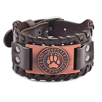Nordic Viking Rune Bear Paw Pattern Bracelet Men's Fashion Metal Leather Woven Jewelry Animal Accessories Party Gift