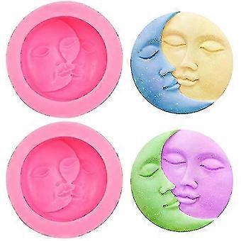 Sun And Moon Face Silicone Moulds Candle Moulds Silicone Handmade Soap Moulds Shell Moulds For Soap Making, Diy, Handmade Bath Bombs, Chocolate, 2pcs