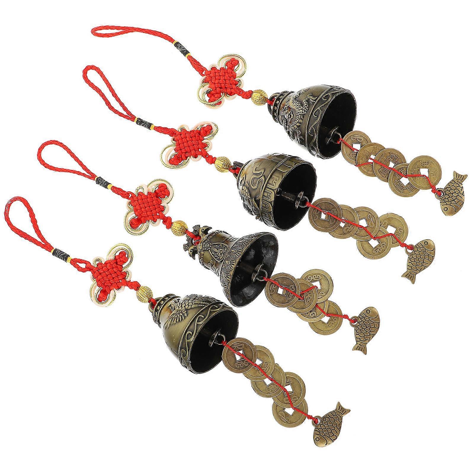 Home Wind Chimes Vintage Style Feng Shui Bells Chinese Traditional For Patio Golden 28x5.5cm 4Pcs